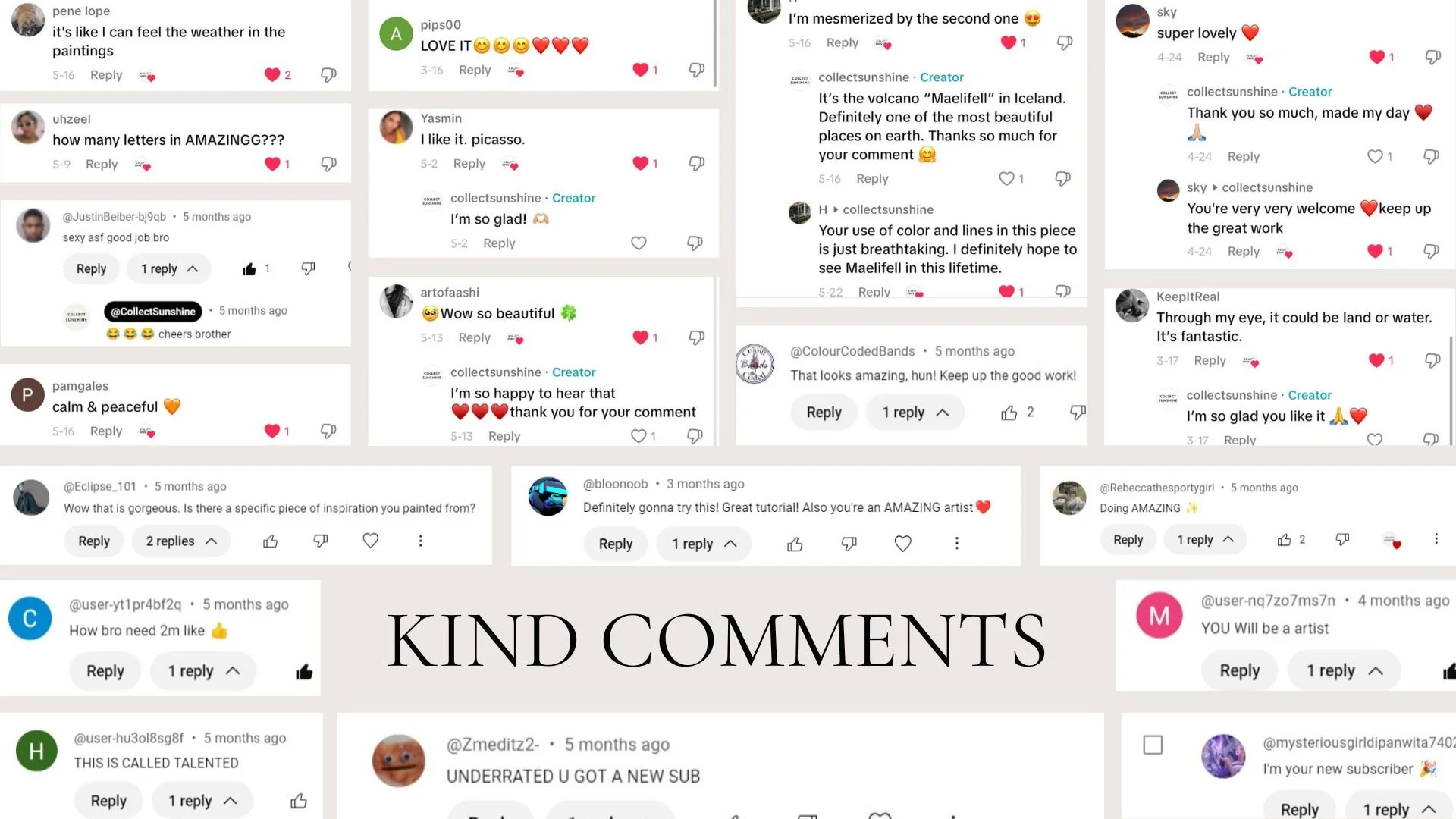 4) Kind Sentiments: I gathered a small following and every time I read a comment I did a little happy dance. Many people told me my paintings made them feel calm and comforted. These comments are priceless to me. As an artist, one of my brand values is creating family-friendly art that supports salubrious living. I always aim to create art that is good for the mind, heart, and soul. I want my pieces to bring a sense of calm, comfort, and nostalgia into my collector’s homes.